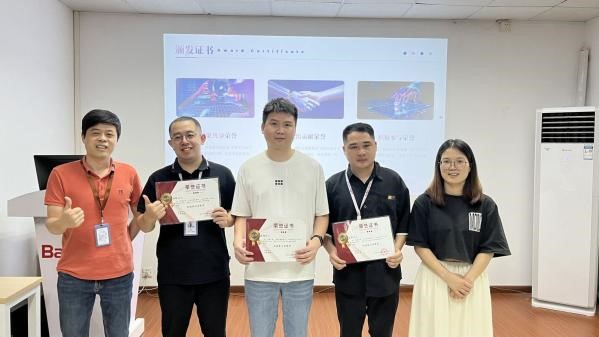 會議的最后是頒獎環節。公司設置了三個獎項:成果共享獎、杰出貢獻獎和積極參與獎。除了為獲獎者頒發榮譽證書外,公司還特別準備了精心挑選的小禮品,以感謝他們的辛勤付出。這些獎項分別由公司領導完成頒獎,并與獲獎者合影留念。這一環節不僅是對大家努力的肯定,更是對未來工作的鼓勵和期待。